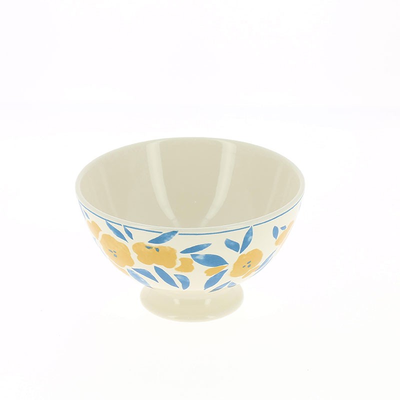L’incontournable Bol du Collectionneur, en faïence émaillée, décoré fleurs jaune et bleues créées au pochoir