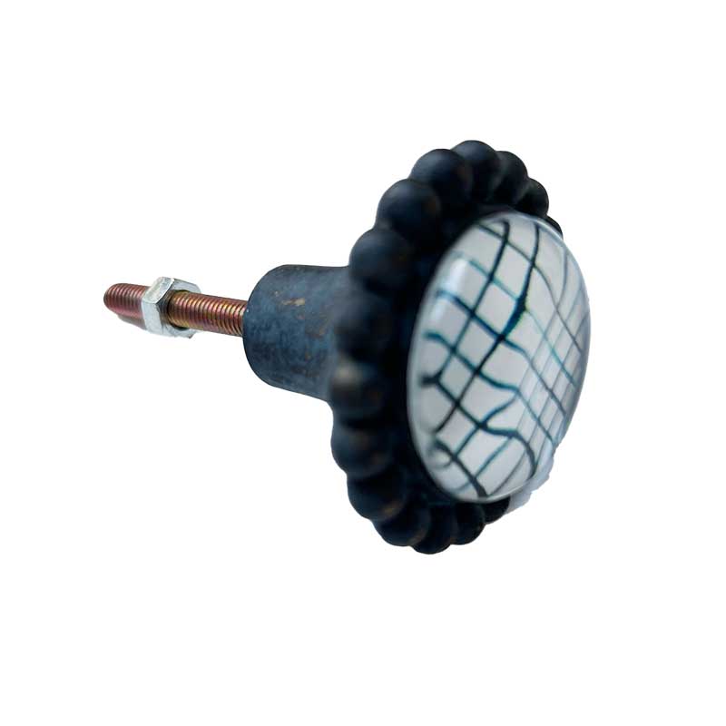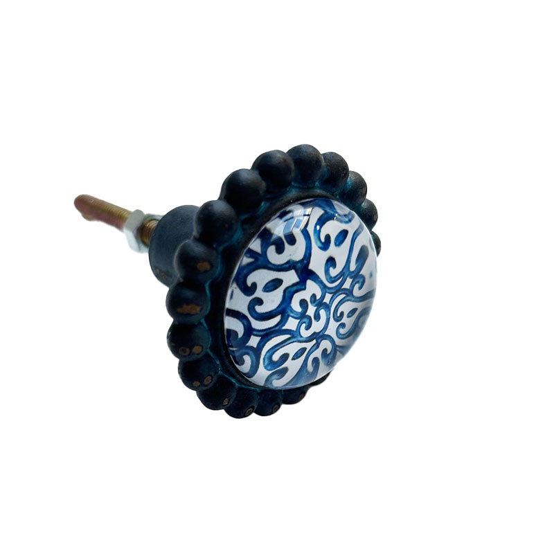 Bouton de porte fer et verre décoratif diam 4,5 cm
